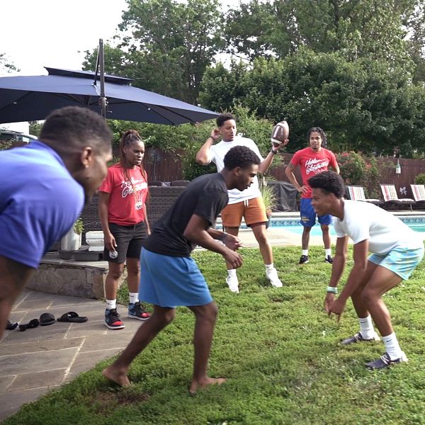 In true Globetrotters fashion, they finished out their visit with the Scheer family with some water basketball, plus football on the farm, and turns on the trampoline!