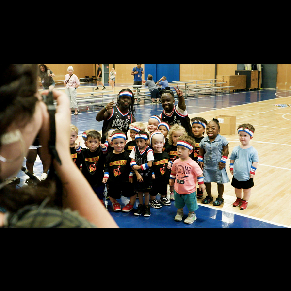 As Jet helped pack the cases for babies, he reflected on the emotions that came up for him with the upcoming birth of his own second child just days away. TNT decided to help pack the cases for small children about the age of her own daughter Kali and imagined how meaningful for a child that age to receive these simple but important items. Wham shared he doesn’t have any kids of his own, but he was very empathetic as he packed cases, talked with one of the Scheer kids and volunteers, and heard stories of both adversity and love and how those and similar stories have affected him personally. Thunder helped pack cases for adolescents and teens and discovered it is a Comfort Cases tradition to not only put essential items in the bags but also to write a personal note to the recipient so they know that someone, somewhere was thinking of them and cares for them. Thunder included in his notes what he thought would be meaningful to a child that age as it’s the same age as his own daughters. As the packing party wrapped up, Rob and his sons invited the Globetrotters to come to their home and hang out with the family to see a little closer look into their lives.