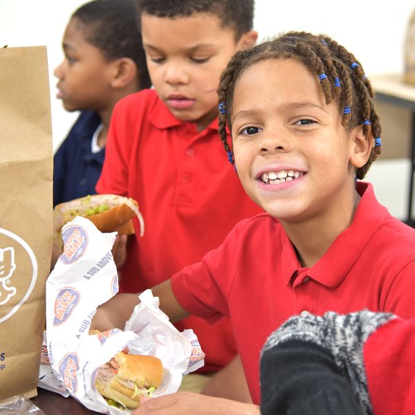 Youth in attendance for the big reveal received a meal from Globetrotters’ tour sponsor, Jersey Mike’s, before joining the team on the court for ball handling skills, trick shots and the famous magic circle.