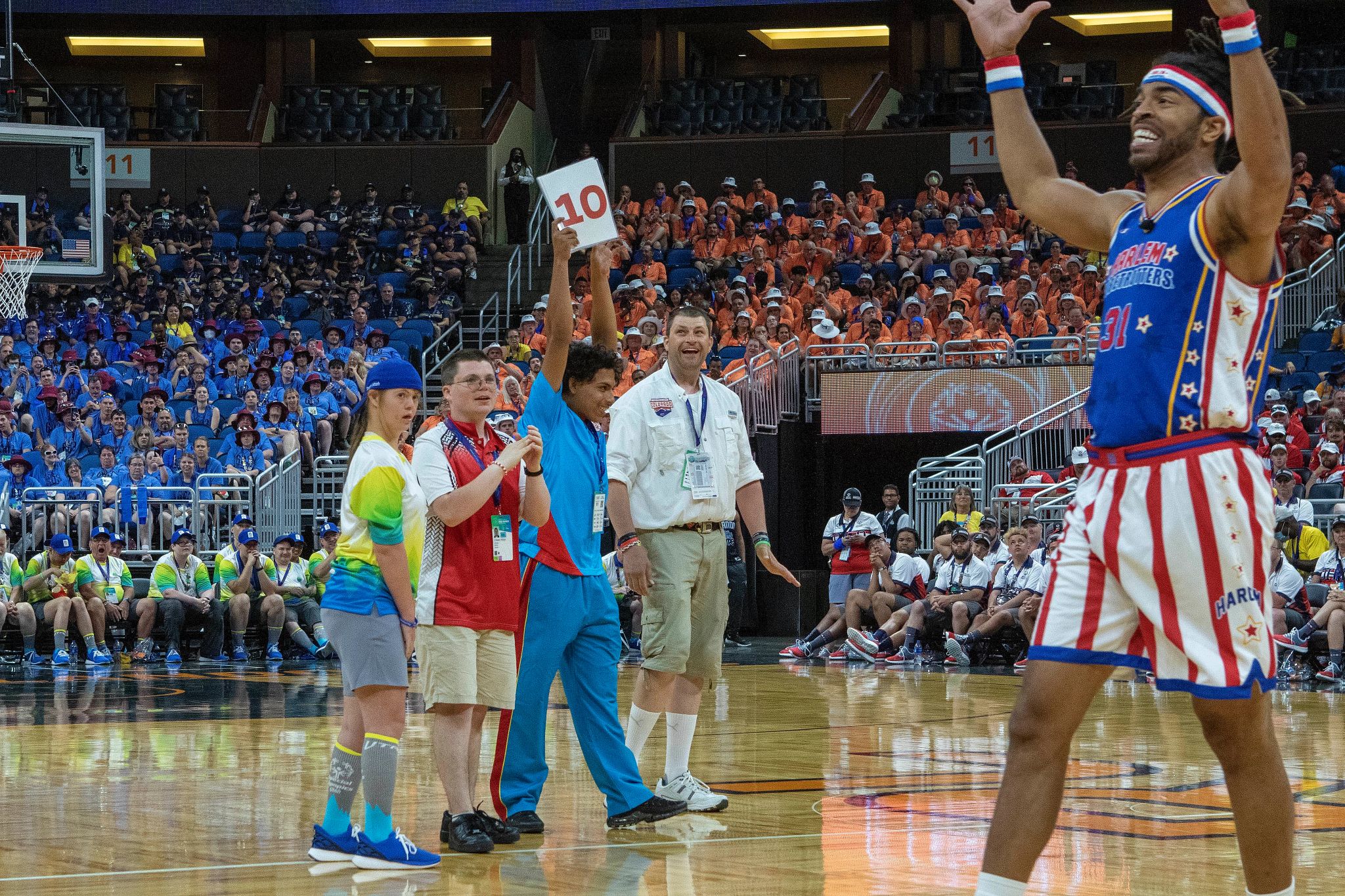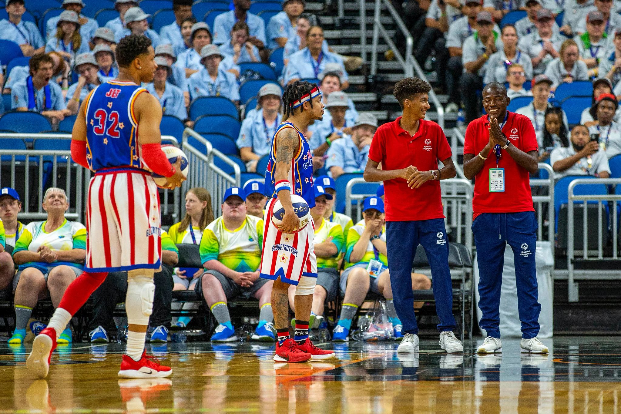 Following the Opening Ceremony, marking the official start of the games, athletes were surprised with an electric performance by Harlem Globetrotters players; Latif ‘Jet’ Rivers, Cherrelle ‘Torch’ George, Rock ‘Wham’ Middleton, and Donte ‘Hammer’ Harrison. From the legendary magic circle to interactive shooting relays, competing athletes shined bright while being immersed into the exclusive game experience.